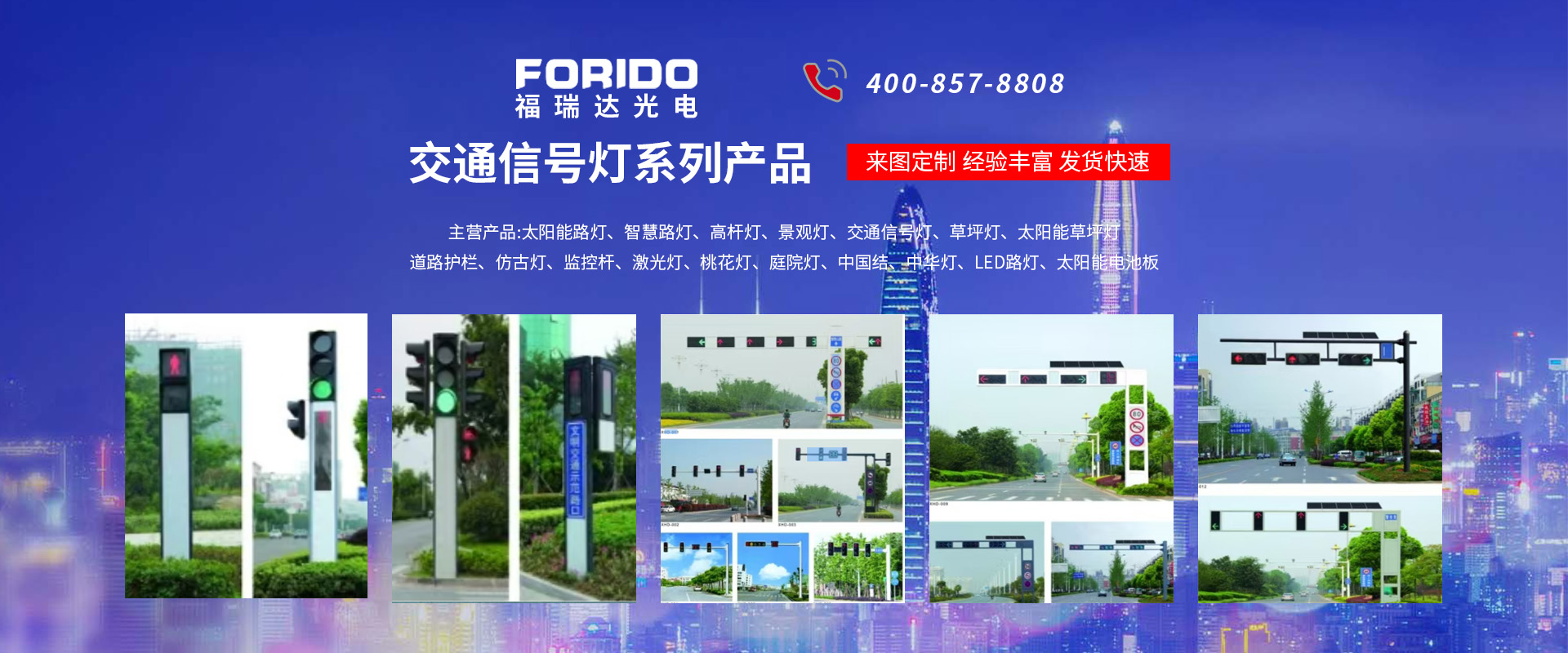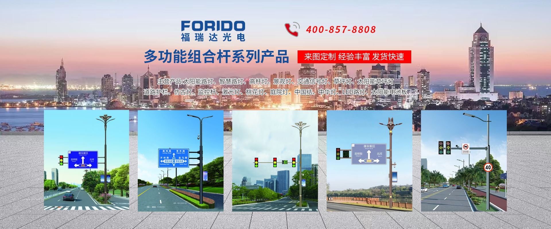 揚州福瑞達光電科技有限公司位于淮左名都歷史文化名城、中國路燈制造基地揚州市北郊菱塘工業(yè)園,公司占地面積76000平方米,注冊資金10518萬元,擁有高級技術嫻熟的員工280多人,擁有大型折彎機、激光切割、數控注塑機、壓鑄機、自動埋弧焊、氣焊、彩色粉末靜電噴塑等大型自動化設備,我公司是一家集設計、研發(fā)、生產、銷售、施工安裝服務為一體的戶外交通照明產品制造商,主要生產智慧路燈、太陽能路燈、LED路燈、高桿燈、景觀燈、交通信號燈、交通標志牌、通信鐵塔、路跨鋼結構、公交站臺、太陽能光伏組件、景點亮化、樓宇亮化工程的設計施工等。公司秉承開拓創(chuàng)新、銳意進取、精誠服務的企業(yè)精神,堅持以“誠信為本、技術為先、服務是金”的合作理念,我們憑借先進的制造工藝、優(yōu)質的產品質量、合理的市場價格和完善的售后服務贏得了廣闊的市場和客戶的信賴。  我公司已通過ISO9001質量體系認證、ISO14001環(huán)境管理體認證,CQC產品認證,中國節(jié)能產品認證,通過“CCC”強制性產品認證,具有市政總承包,照明,交安,設計等資質···